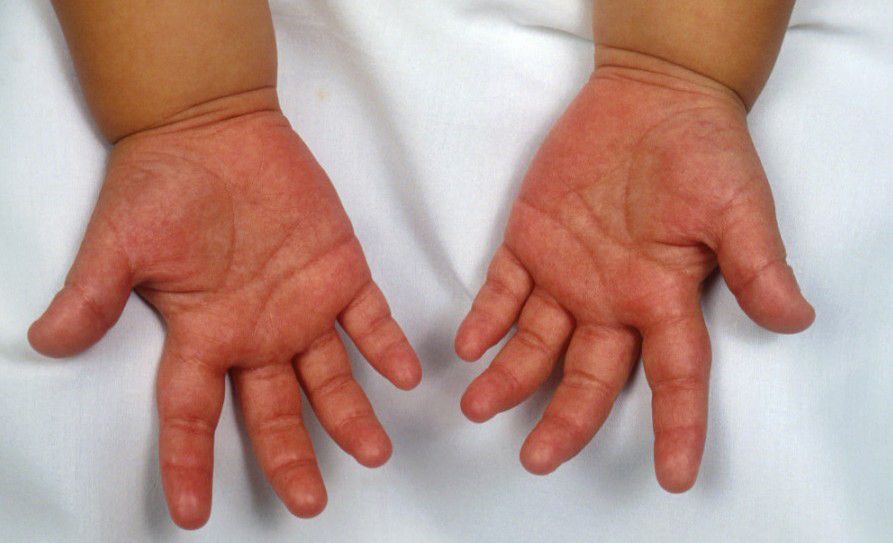 Figure 2C. Cutaneous manifestations of KD. Bilateral hand erythema and edema.