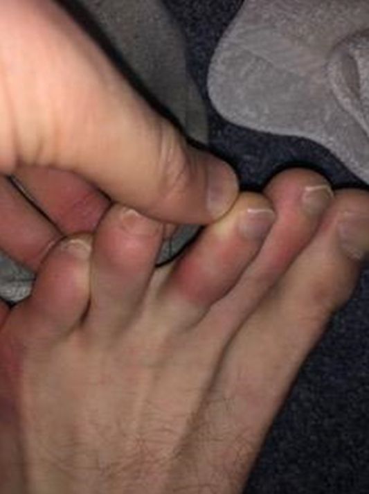 Figure 1A. Pseudo-chilblains. Erythematous-violaceous macules on the toes of a male aged 17 years.