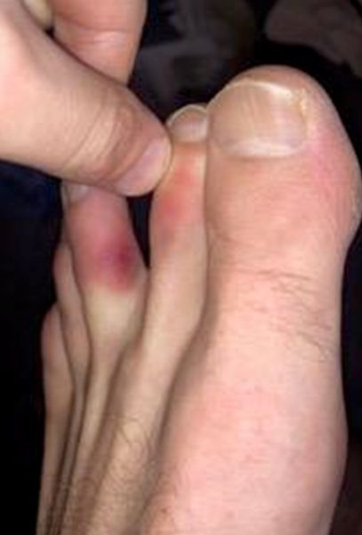 Figure 1B. Pseudo-chilblains. Erythematous-violaceous macules on the toes of a male aged 17 years.