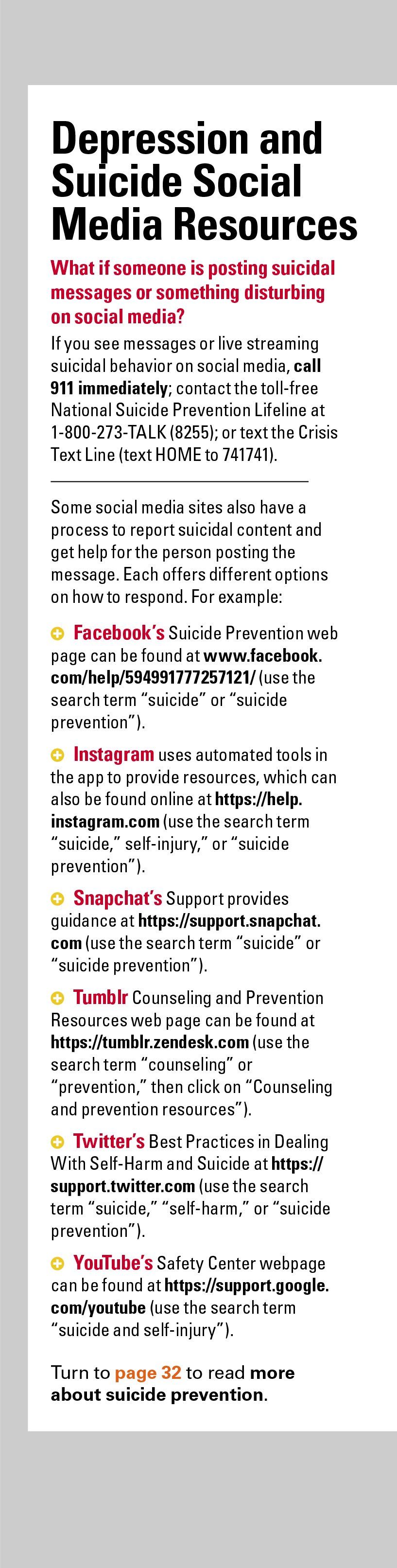 It has been reported that preschoolers diagnosed with major depressive disorder were more likely than healthy preschoolers to cause self-injury during a tantrum episode.9 Young children may be asked questions to screen for suicidal ideation or self-harm, but the questions should be phrased using age-appropriate terms. Because young children may not know what suicide or dead means, it may be more appropriate to ask if they ever wish they could disappear or go away. To investigate self-harm, children may be asked if they ever want to hurt themselves rather than if they ever hurt themselves, which may be misinterpreted as `accidental injury.