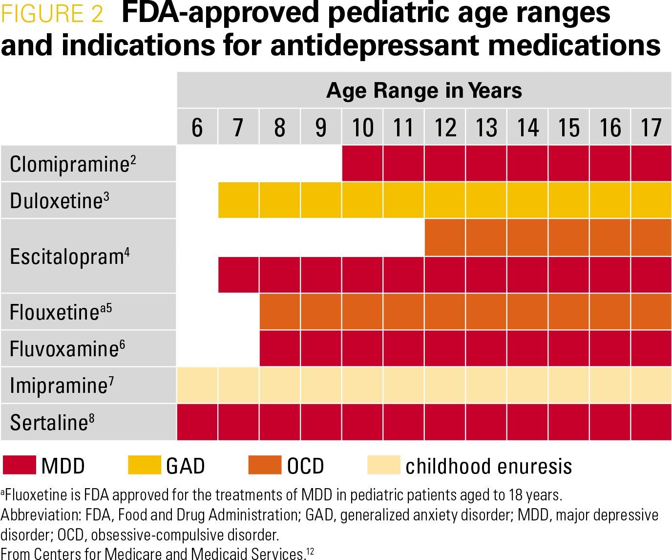12. Centers for Medicare and Medicaid Services. Fact Sheet. Antidepressant medications: use in pediatric patients. Available at: https://www.cms.gov/Medicare-Medicaid-Coordination/Fraud-Prevention/Medicaid-Integrity-Education/Pharmacy-Education-Materials/Downloads/ad-pediatric-factsheet11-14.pdf. Published October 2015. Accessed September 4, 2019.