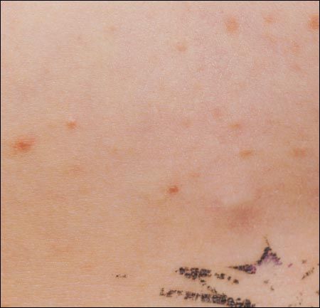 The lesions on this 10-year-old boy had developed during the past year. They were asymptomatic and appeared only on the anterior chest. The child's older brother had had similar lesions, also on the chest, for more than 10 years. The boys' mother was concerned that her younger son might experience the same "disfigurement" as her older son and wanted to prevent that from happening.