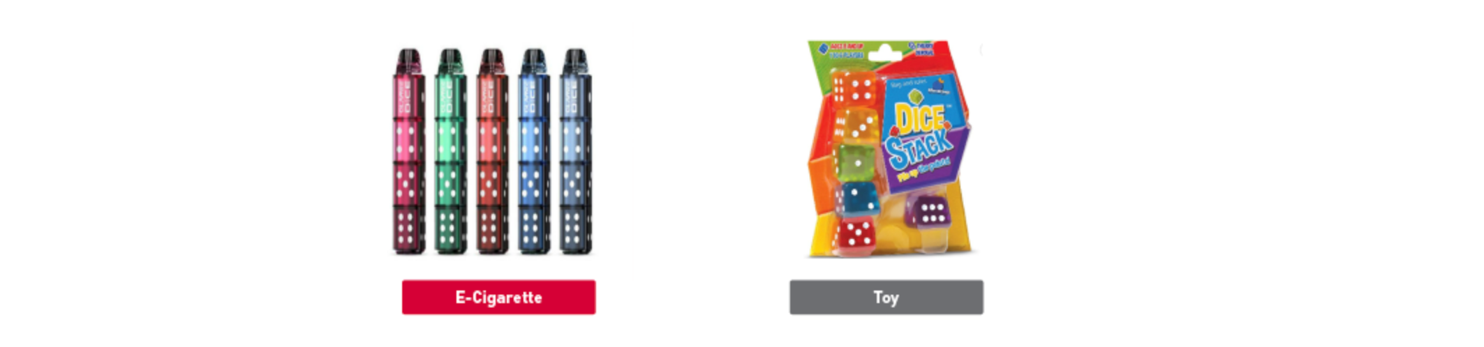 Specifically, the products highlighted in the FDA’s warning letters include e-cigarettes that imitate drink containers for youth-appealing drinks such as slushies, soft drinks, and milk, and those that are designed to look like toys such as action figures, phones, and dice.