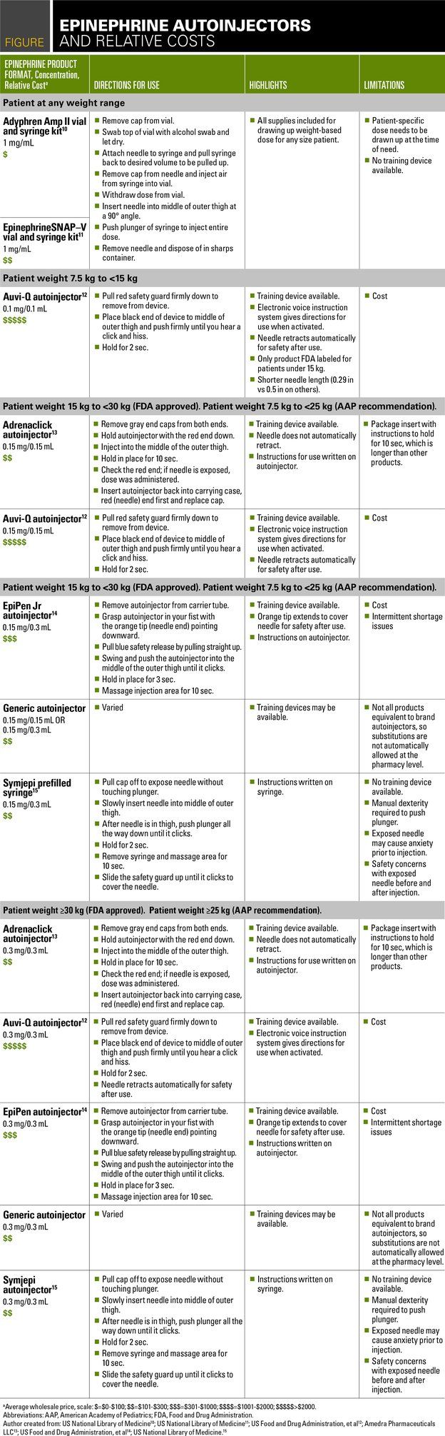 12. US Food and Drug Administration; kaléo Inc. Highlights of prescribing information: Auvi-Q (epinephrine injection solution). Available at: https://dailymed.nlm.nih.gov/dailymed/fda/fdaDrugXsl.cfm?setid=6180fb40-7fca-4602-b3da-ce62b8cd2470&type=display. Revised October 2018. Accessed July 19, 2019.