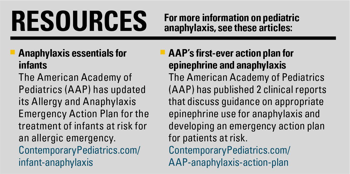 8. American Academy of Pediatrics (AAP). Allergy and anaphylaxis emergency plan. Available at: https://www.healthychildren.org/SiteCollectionDocuments/AAP_Allergy_and_Anaphylaxis_Emergency_Plan.pdf. Updated March 20, 2019. Accessed July 19, 2019.