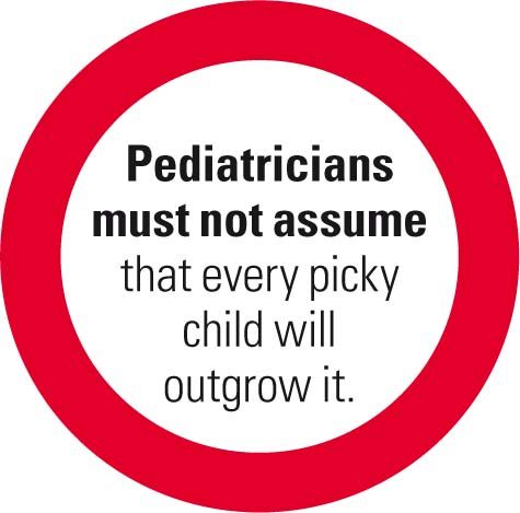 Nomenclature aside, community pediatricians must not assume that every picky child will outgrow it. Pediatricians often tell parents, "Don't worry. As long as they're getting enough calories, give them what they want, and they will outgrow their pickiness."