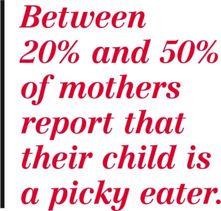 Between 20% and 50% of mothers report that their child is a picky eater. Although the concept remains poorly defined, the spectrum of picky eating ranges from refusing to eat a few foods to having strong adverse reactions to certain foods. Some parents worry needlessly when their child refuses to eat certain foods. Children do not have to eat every single vegetable or every fruit or meat.