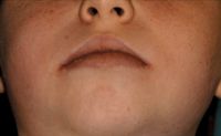 A child or adolescent who presents with painless orolabial swelling may pose a diagnostic dilemma, and a thorough history and careful physical examination are of paramount importance. This swelling may be the presenting feature of disparate pathophysiologic processes including infections, irritant or allergic contact dermatitis, and systemic inflammatory diseases such as CD and sarcoidosis. When swelling becomes recurrent or chronic, a biopsy should be performed to aid in the diagnosis. One study found that 37% of patients who presented with features suggestive of oral CD had asymptomatic gastrointestinal involvement.6 If a child or adolescent has no history of CD but shows signs suggestive of a granulomatous cheilitis, further investigation and careful monitoring of the patient is recommended.
