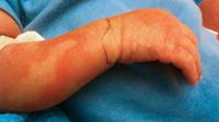 A 3-week-old baby boy is brought to the emergency depratment with swelling of hands and feet. His extremities were edematous, erythematous, and appeared painful.