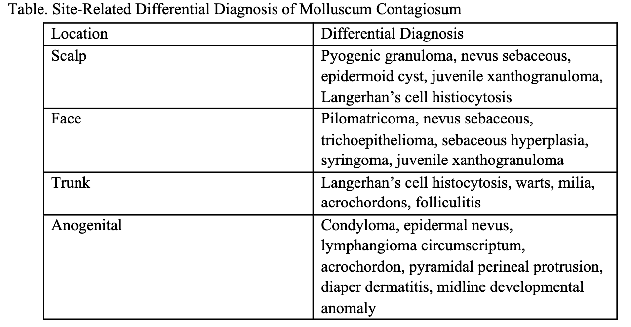 In conclusion, we present a case of atypical congenital MC within the gluteal cleft and describe other clinically atypical molluscum variants to familiarize clinicians with uncommon presentations of this self-limited condition and avoid unnecessary evaluation and misdirected treatment.