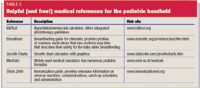 Many novel pediatric references are available on handhelds to simplify and speed up appointments with patients. Numerous programs allow for checking guidelines (BiliTool, Kidometer, PediSuite and Breastfeed 1.1), calculating complicated medical equations (MedCalc & PediSuite), plotting growth charts (Growth Charts) and providing catch-up schedules for missed immunizations (Shots 2006) (see Tables 1 and 2). Checking age-based normal ranges is made easier by PDA programs as well (Kidometer & PediSuite).
