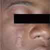 Sixteen-year-old with a recurrent, painful, pruritic rash on right cheek and right eyelid. Current outbreak started 2 days earlier. The rash always appears in the same fashion and in the same location; it typically lasts a few days and resolves spontaneously.