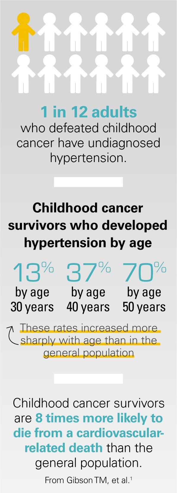 1. Gibson TM, LI Z, Green DM, et al. Blood pressure status in adult survivors of childhood cancer: a report from the St. Jude Lifetime Cohort Study. Cancer Epidemiol Biomarkers Prev. 2017;26(12):1705-1713.