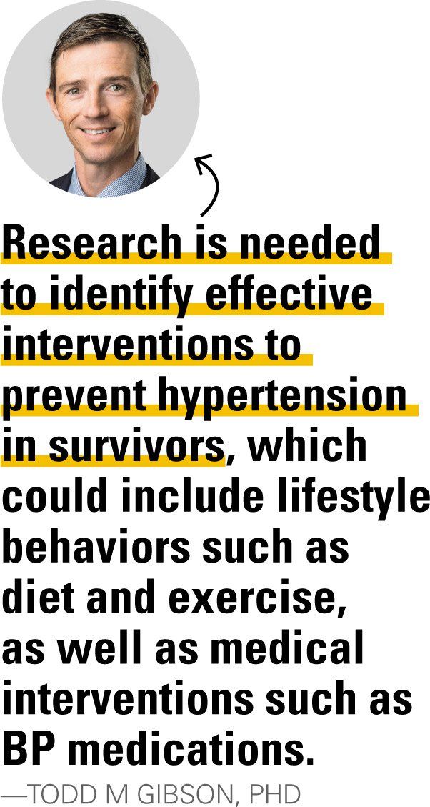 "In general, our results support known hypertension prevention measures such as maintaining a healthy body weight," Gibson says. "Hopefully these results will further emphasize the importance of BP surveillance and management to both childhood cancer survivors and clinicians."