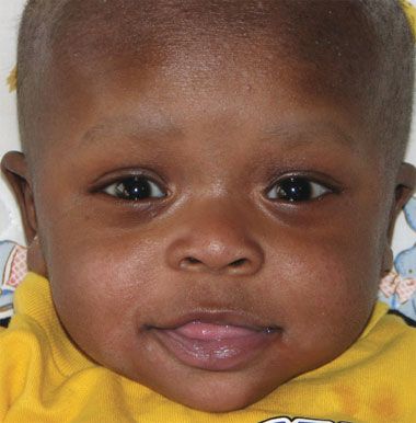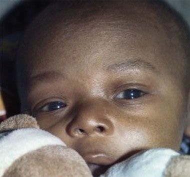 Figure 1 – On admission, the infant had cloudy corneas and fine, brittle hair.