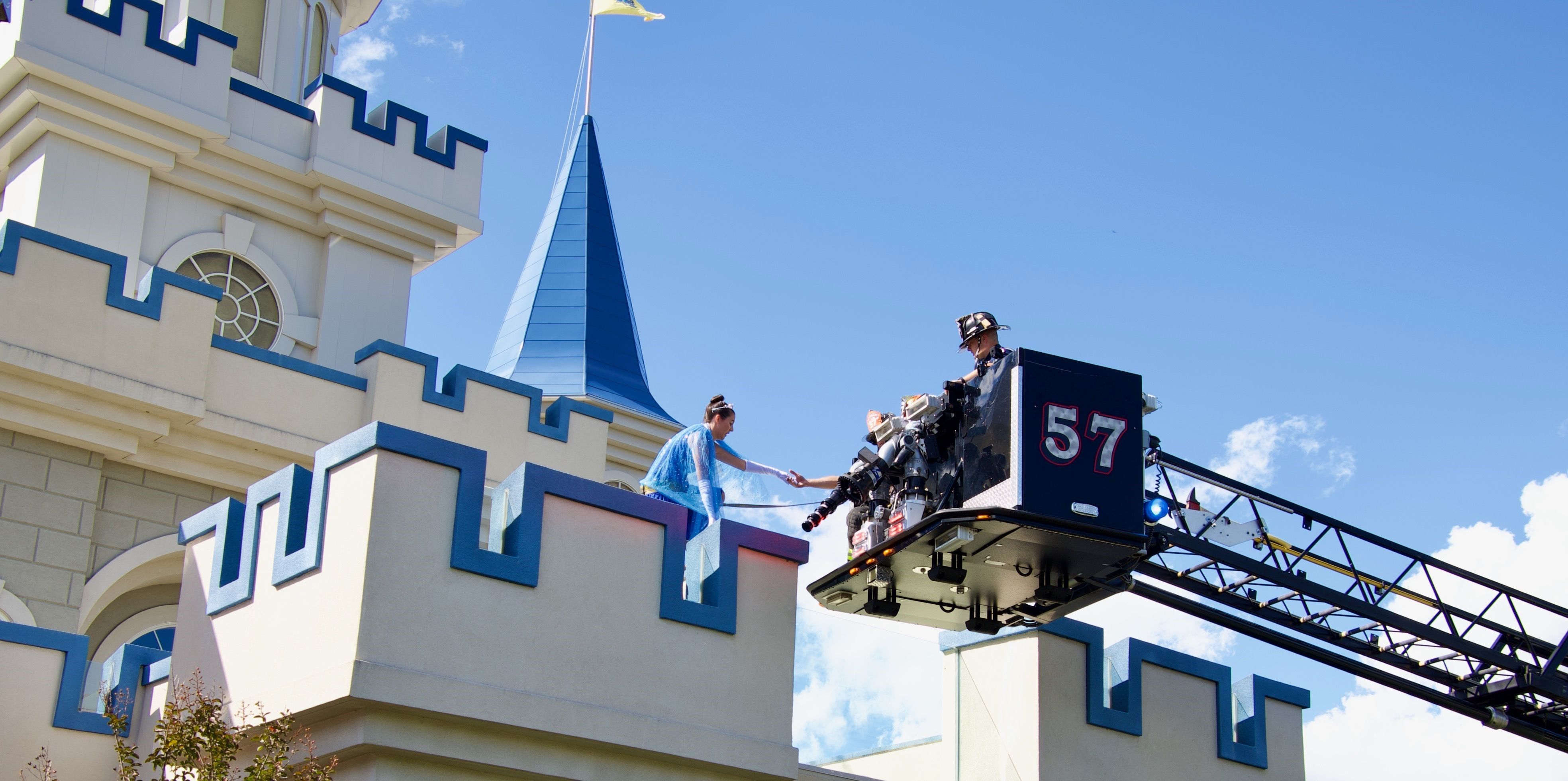 Antonio’s heroism was immediately called upon, when he was needed to help save the day and rescue a princess from the balcony of the Make-A-Wish castle. Antonio boarded the ladder truck without hesitation, rose into the sky to the balcony and made his very first rescue as an official firefighter. Upon their safe return to the ground, Antonio was greeted with cheers and fanfare, recognizing the courage, bravery, and selfless dedication to his community he had just demonstrated – the special qualities found in the heroic first responders he’s looked up to his entire life.