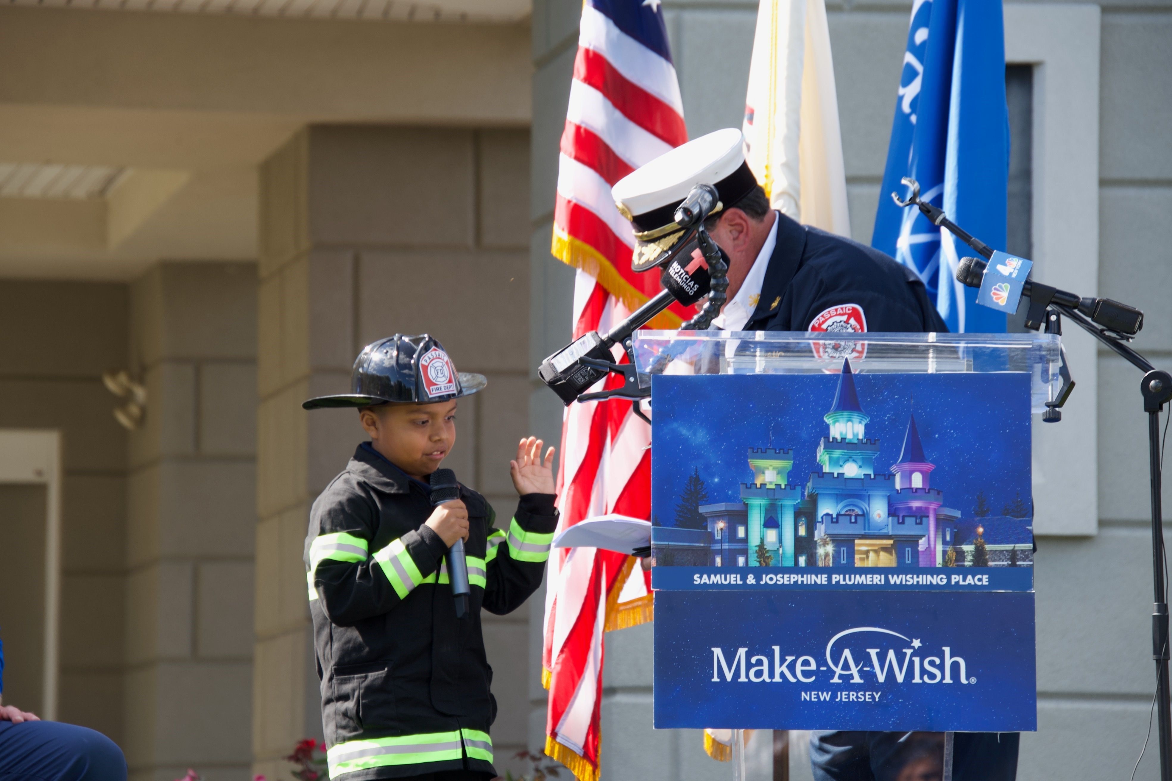 After a morning filled with special activities including putting out a fire with the Passaic Fire Department and a special ceremony hosted by the Mayor of Passaic, Hector Lora, Antonio was whisked down the New Jersey Turnpike, escorted via a Passaic Fire Department and New Jersey State Police motorcade with his family to the Samuel & Josephine Plumeri Wishing Place, the Make-A-Wish New Jersey castle in Monroe Township.