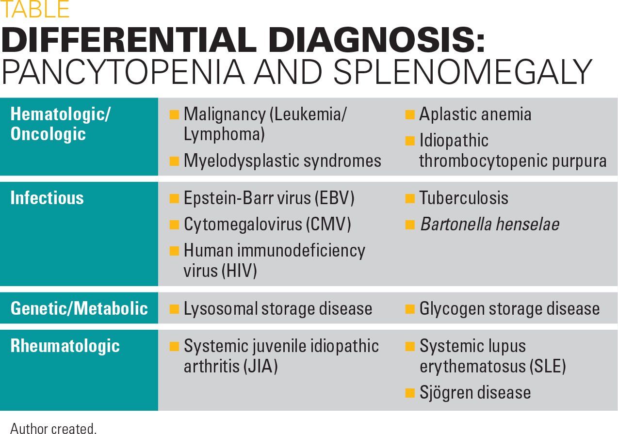 2. Rafee Y, Xavier A, Antoine M, Borkin M, Rongkavilit C. An infant with fever, hepatosplenomegaly, and pancytopenia. Pediatr Infect Dis J. 2008;27(6):571.