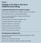 "The allergic nose," above, describes the physiologic process that produces the tissue changes of allergic rhinitis. Convincing evidence for nasal allergy develops when symptoms compatible with the diagnosis occur in conjunction with defined allergen exposure and relevant, IgEbased sensitivity. Unfortunately, even these requirements may be difficult to establish when complaints are continuous or exposures inapparent. Yet nasal symptoms that occur predictably in the presence of house dust, pets, certain foods (rarely), or seasonal exposures strongly suggest allergy as one determinant. Errors of inference easily result when implicated exposures are also potent nonspecific irritants that cause symptoms in persons other than those with allergies. Similarly, symptoms occurring during familiar March-April and September-October peaks of viral illness are readily mistaken for symptoms of seasonal pollen allergy. Table 1 lists factors in the patient's history that favor a diagnosis of nasal allergy.