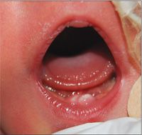 Seven days after birth, a female infant was noted to have 2 mandibular central incisor teeth. The teeth were firmly fixed in the gums, and the infant was growing well on breast milk. Neonatal teeth (which appear during the first 30 days of life) are about 3 times more common than natal teeth (which are present at birth), although both are relatively rare. Most natal and neonatal teeth are isolated findings; however, they may be associated with an underlying condition (eg, Ellis-van Creveld syndrome, Hallermann-Streiff syndrome, Pierre Robin syndrome, or Jadassohn-Lewandowski syndrome) and are frequently present in patients with a cleft palate.1 There is no sex predilection among infants with neonatal or natal teeth. About 15% of affected infants have a sibling or parent with a similar history.1,2