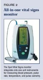 Obtaining vital signs in a busy pediatric practice is time-consuming because the nurses must use separate instruments to take temperature, pulse oximetry measurements, and blood pressure. The Spot Vital Signs, another new product from Welch Allyn, integrates all these instruments into a single device that takes noninvasive blood pressure, pulse rate, temperature, and pulse oximetry measurements quickly and easily (Figure 2).