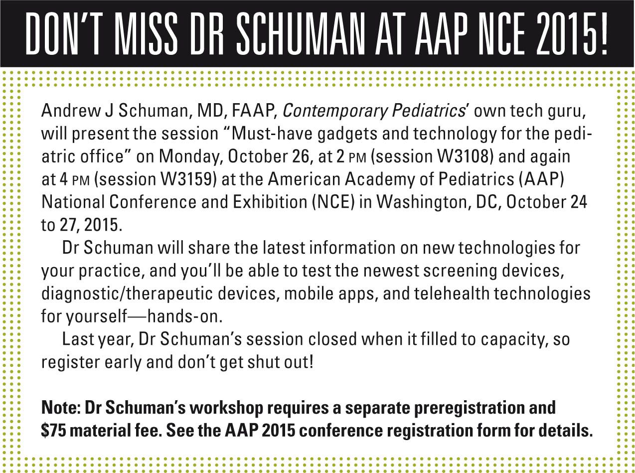 Dr Schuman, section editor for Peds v2.0, is adjunct assistant professor of pediatrics, Geisel School of Medicine at Dartmouth, Lebanon, New Hampshire, and editorial advisory board member of Contemporary Pediatrics. He has nothing to disclose in regard to affiliations with or financial interests in any organizations that may have an interest in any part of this article.