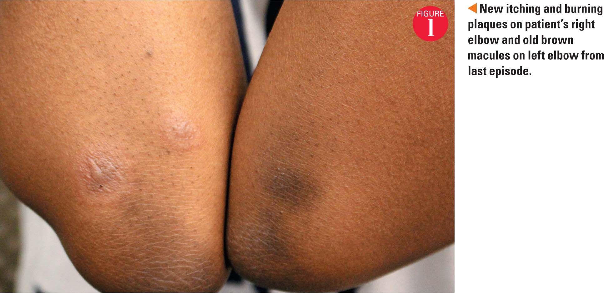 Recurrent lesions are often related to infectious etiologies, the most common being herpes simplex virus (HSV).2 In most cases where this is the causative agent, polymerase chain reaction will detect virus from the skin lesions. Several studies have quoted rates of HSV-triggered recurrent EM anywhere from 23% to 100% of patients.3 Less-common infectious etiologies include infection with Mycoplasma pneumoniae.