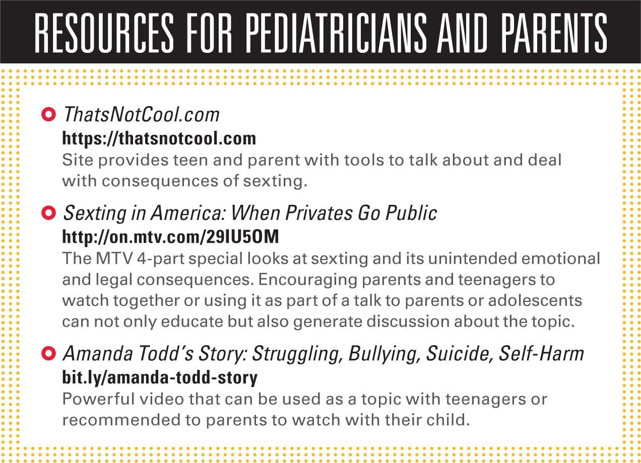 1. Celizic M. Her teen committed suicide over ‘sexting.’ Today website. Available at: http://www.today.com/parents/her-teen-committed-suicide-over-sexting-2D80555048. Published March 6, 2009. Accessed July 15, 2016.
