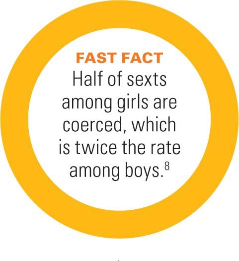 In relation to pressured sexts, nearly 70% of requests come from a date, nearly 20% from a friend, and less than 10% result from blackmail or a threat.8