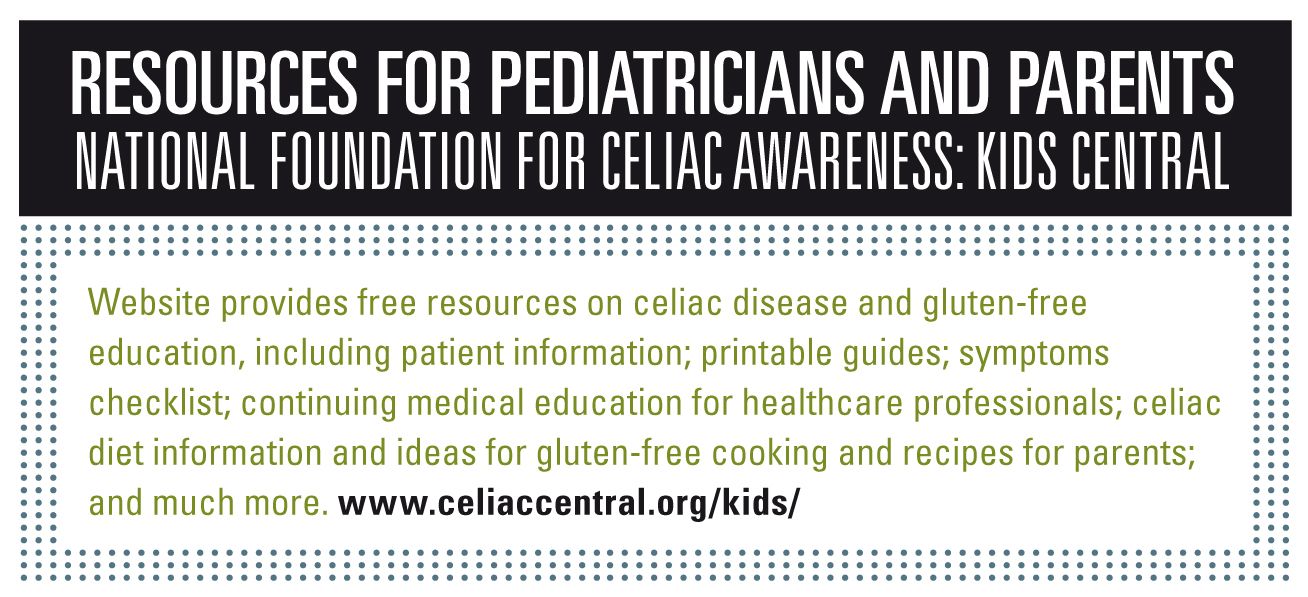 Website provides free resources on celiac disease and gluten-free education, including patient information; printable guides; symptoms checklist; continuing medical education for healthcare professionals; celiac diet information and ideas for gluten-free cooking and recipes for parents; and much more.
