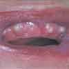 The lesions in this newborn's mouth are Bohn nodules. These mucous gland cysts manifest as firm, small (less than 3 mm) grayish white nodules--usually in the mouth on the buccal or lingual aspect of the alveolar ridges. They occasionally occur on the palate, and may be confused with large Epstein pearls.