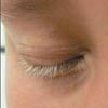 The lashes on this 12-year-old girl's right eye are white and gray; the lashes on the left eye are black. This small patch of white-gray hair, known as poliosis, occurs most often along the forehead (the so-called white forelock); however, hair anywhere on the body can be affected. The appearance in healthy persons simply indicates a lack of pigment in the hair and skin of the involved area.