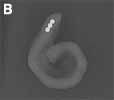 The child's hip pain subsequently resolved and the results of an abdominal examination were normal, according to John Harrington, MD, Michael Morris, MD, and Whitney McBride, MD, at the Maria Fareri Children's Hospital at New York Medical College in Valhalla, NY. Nevertheless, the child underwent elective appendectomy to remove the beads (B). She recovered uneventfully.