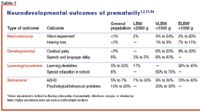 Adding to the number of outcomes are studies that have found that nearly half of VLBW children will require special education services.9 Lastly, as many as 18% of VLBW infants go on to have severe disability, which is defined as spastic quadriplegia, blindness, deafness, uncontrolled epilepsy, or severe learning disability.10