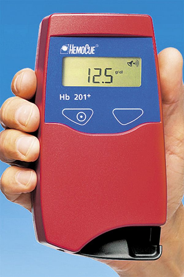 HemoCue Hb 201+: Screens for anemia in seconds using finger-stick blood.several other devices that produce results from finger-stick blood in mere seconds. Unfortunately, there are no rapid tests that provide a quick assay of a patient’s iron status. So, if you want to combine a hemoglobin measurement with an assay to determine if the child has iron deficiency, you will need to send a child to your lab for a phlebotomy. Likewise, if you are screening sexually active teenage girls for chlamydia or gonorrhea, a urine test will need to be sent to your screening lab, although rapid tests are available for use with swabs obtained if a pelvic exam is performed. Point-of-care testing can also facilitate lipid screening when indicated. Screening for anemia in adolescent girls can be easily accomplished with the Masimo Pronto-7 device (Masimo; Irvine, California), which allows clinicians to screen for anemia transcutaneously. Unfortunately, as of this writing, this device doesn’t work reliably in toddlers.