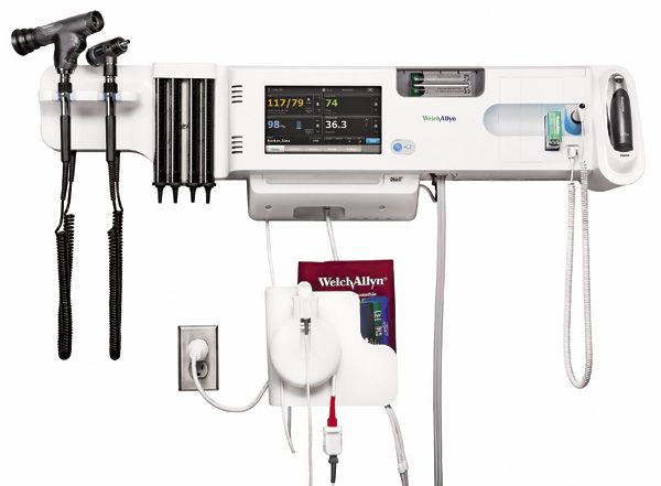 Connex Integrated Wall System: Facilitates taking vital signs and transmits data to the EHR.pediatric sphygmomanometer that rapidly records blood pressure and pulse rate with a pulse oximeter, as well as an ear or digital thermometer, with its standard LED macroview otoscope and ophthalmoscope. The system also integrates with a number of adult and pediatric scales.