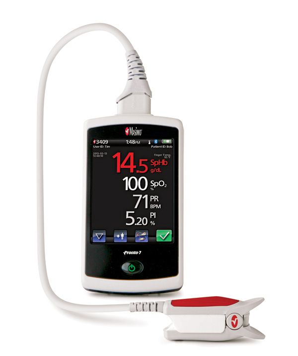 Pronto-7: Use to screen older children for anemia transcutaneously. Photo courtesy of Masimo Corporation.