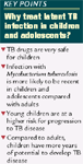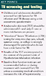Screen children and adolescents for risk factors for latent TB infection and active disease, perform a tuberculin skin test if-and only if- a risk factor is present, and treat patients with a positive finding according to strategies discussed here.