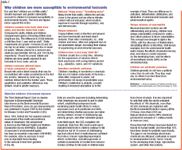 Rising rates of asthma and obesity, more reports of developmental disabilities and early puberty, concerns about increasing incidence of childhood cancer... parents, scientists, and pediatricians alike worry about how these health conditions relate to the environment our children live in. Indeed, children are often more vulnerable than adults to the effects of environmental hazards (See Table 1), causing their parents to be concerned about the pollutants in the natural environment, i.e., physical, chemical, and biological contaminants in air, water, food, and soil. There is also increasing attention to the man-made or "built" environment comprising the network of roads, public transportation, and physical structures where children live, play, and work.