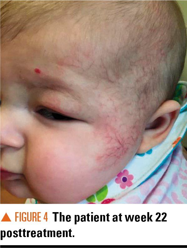 The patient was determined to have intermediate risk for stroke and was initiated on low-dose aspirin. She also started propranolol at approximately 6 weeks of life, with marked improvement of her IH (Figure 4). She continues to meet all developmental milestones and follows with the consulting pediatric specialists.