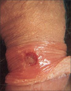 Chris arrives at your office for his pre-college physical examination. He appears to be a fairly mature 18-year-old who will be attending an Ivy League university on a full scholarship. He denies any drug or alcohol use. While Chris states that he wants to postpone sexual intercourse until after marriage, he does admit to engaging in oral sexual activity with about 10 different girls in his school within the past year. You counsel him on the risks of this large number of partners, but he insists that "oral sex is safe sex." His physical examination proves him wrong. You point out an ulcer on the side of his penis.