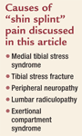 We will consider both types of shin pain as we explore the differential diagnosis in the patient whose case has just been described-a differential that includes MTSS, tibial stress fracture, peripheral neuropathy, lumbar radiculopathy, and ECS.