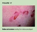 Bullous pemphigoid (BP) is an acquired immunobullous disease that usuallyaffects the elderly.32 Affected individuals develop tense, sometimeshemorrhagic bullae and erosions (Figure 17). A rare variant of BP, localizedvulvar pemphigoid, occurs in children, creating lesions that may simulatethe trauma of sexual abuse or an ulcerative sexually transmitted disease.A definitive diagnosis requires cutaneous biopsy and direct immunofluorescencetesting.