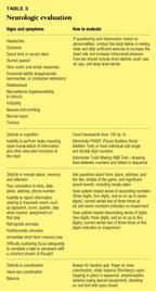Neuropsychologic testing. Since a full neuropsychologic battery is too long for widespread use, neuropsychologists are developing a brief neurocognitive test that can be used as one station in the school-based preparticipation physical examination or in the offices of pediatricians who have been trained in administering it.9 Preliminary studies suggest that some of the items in this test can differentiate the athlete who has had a concussion from one who has not, perhaps eventually even without preconcussion baseline data. This instrument can identify deficits that persist after the obvious signs of concussion are gonedeficits that appear to be relevant in determining whether a athlete can safely return to the game.