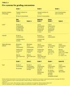 Coaches, athletic trainers, and other adults who make sideline decisions about when and if to return an athlete with a head injury to the game need a relatively straightforward plan to follow. Although several concussion grading systems, listed in Table 2, have evolved over the years, no one of them has been adopted.6 The user-friendly system developed recently by the American Academy of Neurology provides a practical approach to making sideline decisions.7 This system, along with management and return-to-play criteria, is concisely described on a laminated card (see "Resources to guide sideline decisions.").