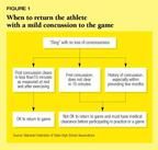 When is it safe for an athlete who has had a head injury to go back into the game in which the injury occurred? According to the algorithm in Figure 1, developed by the National Federation of State High School Associations and its medical advisory committee, only the child who receives a "ding" whose associated confusion "clears" rapidly is allowed to return to play in that game or practice.5 All others, as well as the child who loses consciousness, even if only for seconds, are prohibited from play and must have medical clearance before participating in the sport again. A history of previous head injury also should be considered in making the return to play decision.
