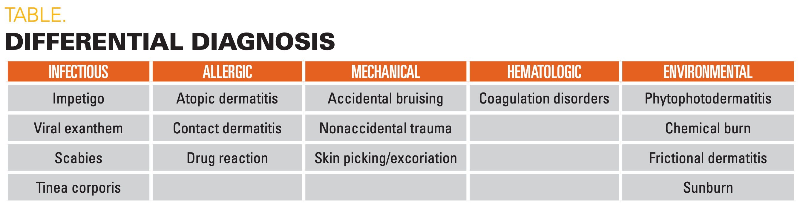 Furthermore, clinicians can use evidence-based screening tools to enhance the recognition of abusive injuries. For instance, the validated bruising clinical decision rule, known as TEN-4-FACESp, identifies specific bruising characteristics such as location on the torso, ear, neck, specific areas of the face, or patterned bruising to be predictive of abuse in children younger than 4 years.1 Integrating such clinical tools can aid in maintaining a high index of suspicion and ensure the early identification of at-risk patients while also balancing the risk of false positive reports.