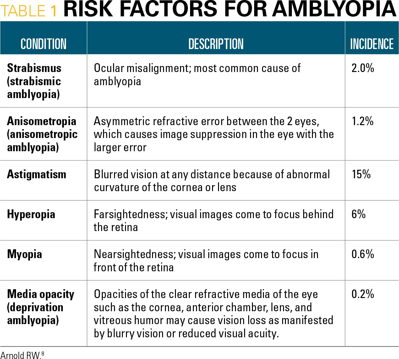 8. Arnold RW. Amblyopia risk factor prevalence. J Pediatr Ophthalmol Strabismus. 2013;50(4):213-217.