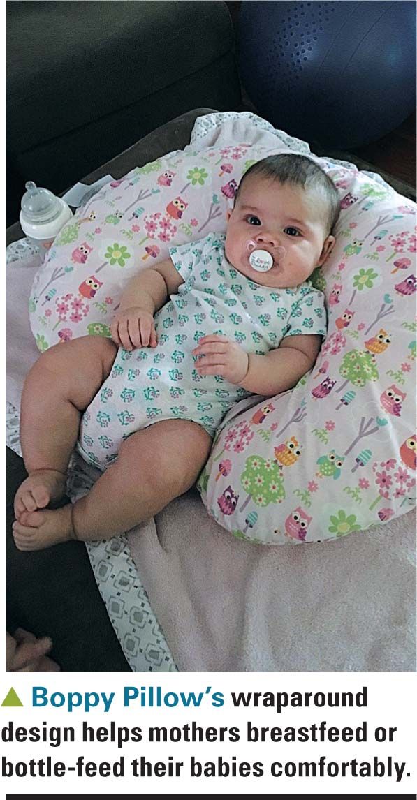 There has been no better innovation than the Boppy Pillow (Boppy Company, Golden, Colorado) for feeding today’s babies. The wraparound design helps mothers nurse or bottle-feed their babies comfortably, and the pillow also can be positioned to facilitate “tummy time” to strengthen the baby’s neck and back muscles.
