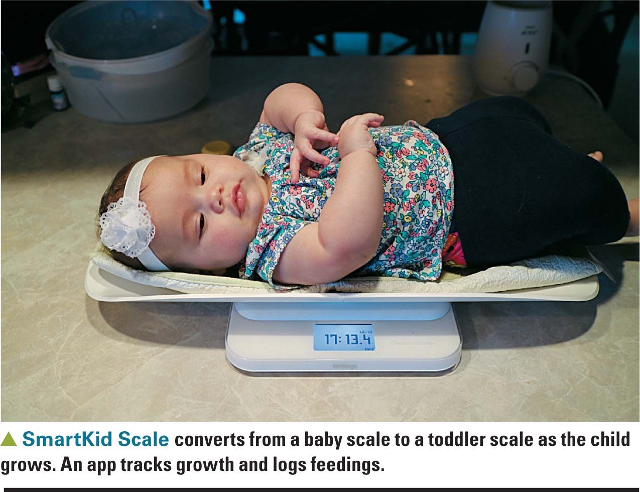 Baby scales were not necessities years ago, and are not even today, but they are nice to have when a mother is nursing, to reassure parents that the baby is gaining weight appropriately. Withings USA (Cambridge, Massachusetts) makes a baby scale called the Smart Kid Scale that converts to a toddler scale when the child gets bigger. An app allows parents to track the growth of their child and log feedings.